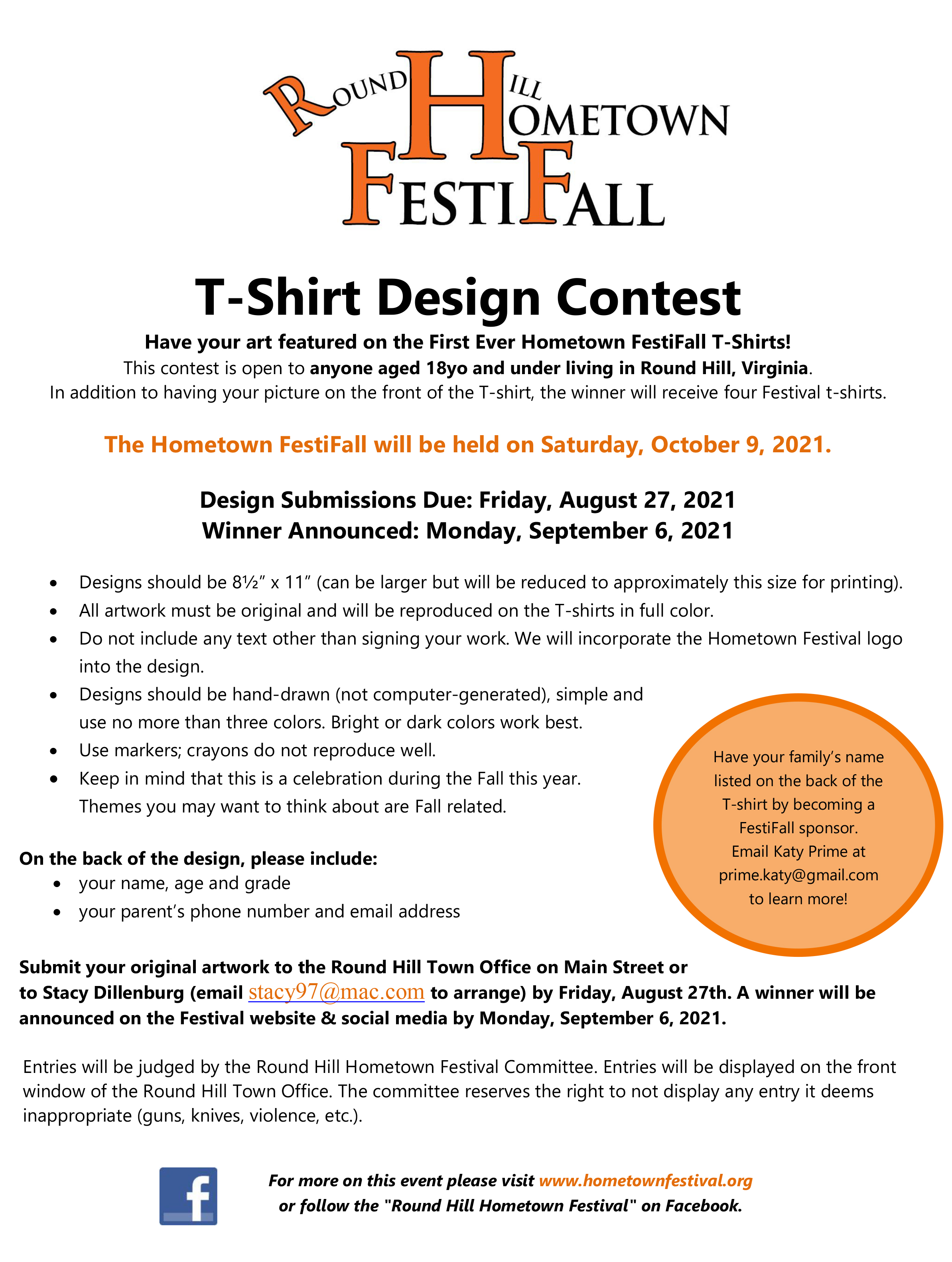 The Round Hill Hometown FestiFall T-shirt Design Contest is now open!